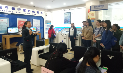 2018年10月26日下午,海角 2017级的22名同学在马威副教授、教务办戴晓梅老师的带领下,前往中国建设银行长沙河西支行进行认知实习。本次活动由海角 教务办组织,旨在落实学院本科生培养目标、推进实践教学相关工作以及提高学生阅历。