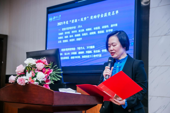学院院长王修华致欢迎词。他讲述了“君源·筑梦”奖助学金和农金励志奖助学金的设立之源,对支持学院发展和设立奖学金的老师、校友表示诚挚感谢,并向校友汇报了学院学科专业良好发展态势与核心竞争能力。他强调奖学金意义在于燃灯传薪,是对获奖同学的鞭策与鼓励,期望大家发挥榜样模范,争做新时代青年,绽放青春绚丽之花。
