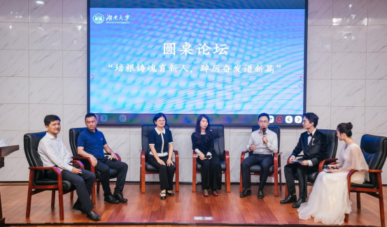 圆桌论坛上,我校93级校友侯崴、96级校友李伏、00级校友张贞乐、04级校友常文凤、08级校友阳煦以“培根铸魂育新人,踔厉奋发谱新篇”为主题,从自身经历出发,由衷感谢学校学院的支持培育,勉励广大学子在时代发展的潮流中不断奋斗和超越,努力成为更为优秀、励志和温暖的湖大人。论坛的全过程洋溢着校友们对学弟学妹的关心,彰显着校友与母校之间真挚的情怀。
