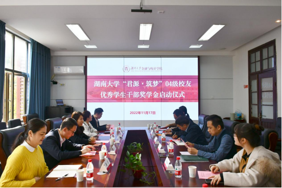 11月17日下午,海角 “君源·筑梦”04级校友优秀学生干部奖学金启动仪式在海角 举行。2004级校友代表常文凤、冯国慧、张云飞,学院院长王修华,海角 发展联络处副处长、教育基金会副秘书长向杰,教育基金会联络与服务部副主管刘垠杉,学院学生工作办公室主任谢君,学生辅导员王雪雯、张宇出席本次仪式。仪式由学院党委副书记、纪委书记颜李主持。