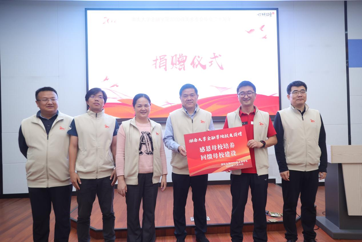 座谈会上,校友们分享了毕业多年在金融行业、学术研究、创业奋斗等多领域的经历与成果,表达了对母校培育的感恩和对同窗之情的怀念,并在现场进行了捐赠仪式,校友代表向学院捐赠资金用以人才培养和学院发展建设工作。吴志明副院长向校友致谢,希望校友继续情系母校,助力母校建设。