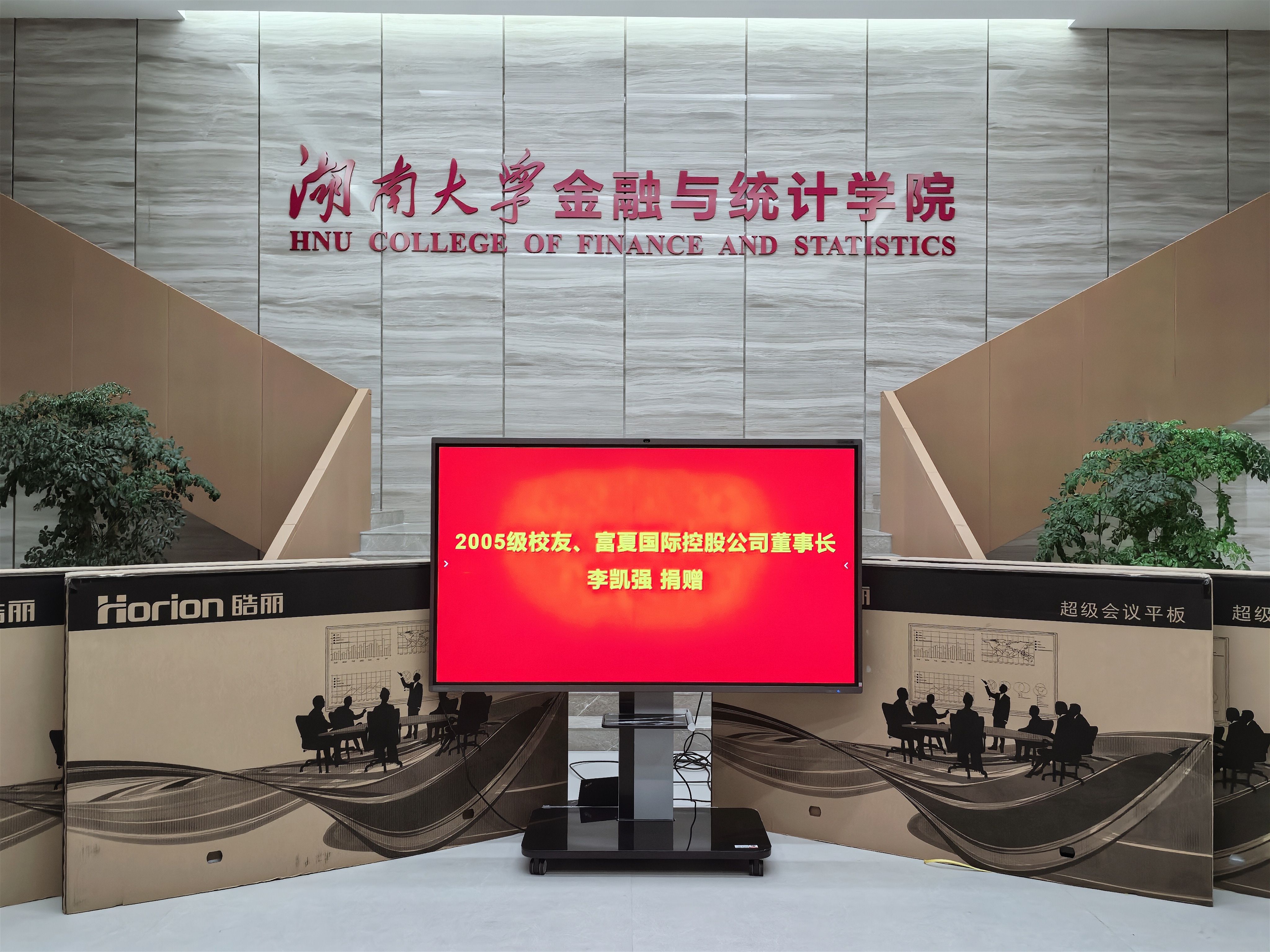 2025年10月,学院保险专业2005级校友、富夏国际控股公司董事长李凯强捐赠5套智能会议平板,支持学院办学条件改善。